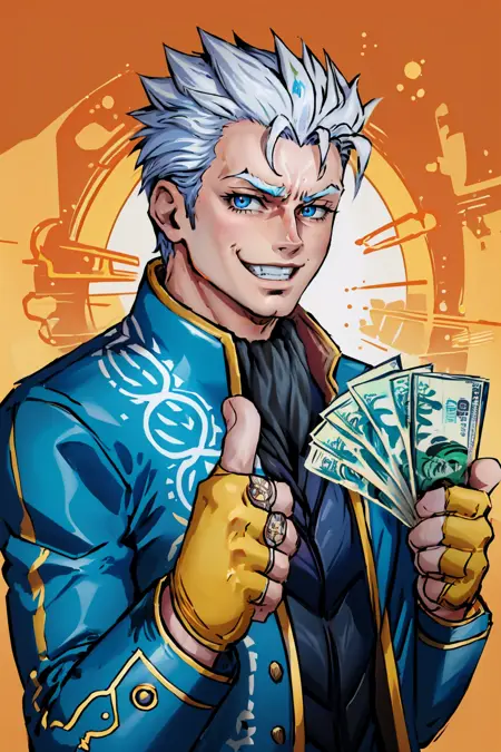 자세 태그: 상반신, 돈, 들고 있음, 돈을 들고 있음, 엄지척