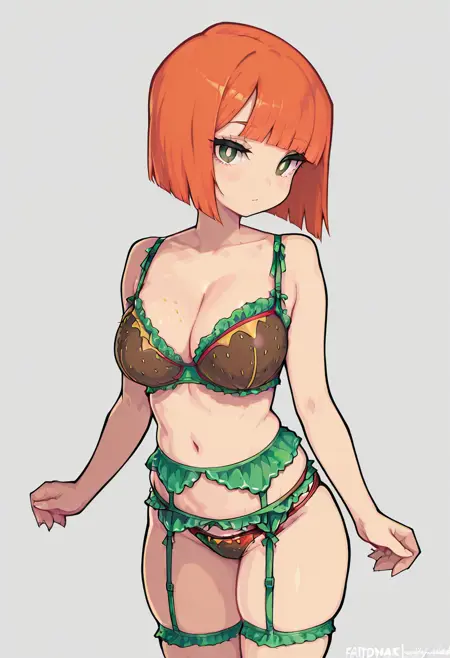 burger lingerie, bra, panties, thigh strap,garter belt,