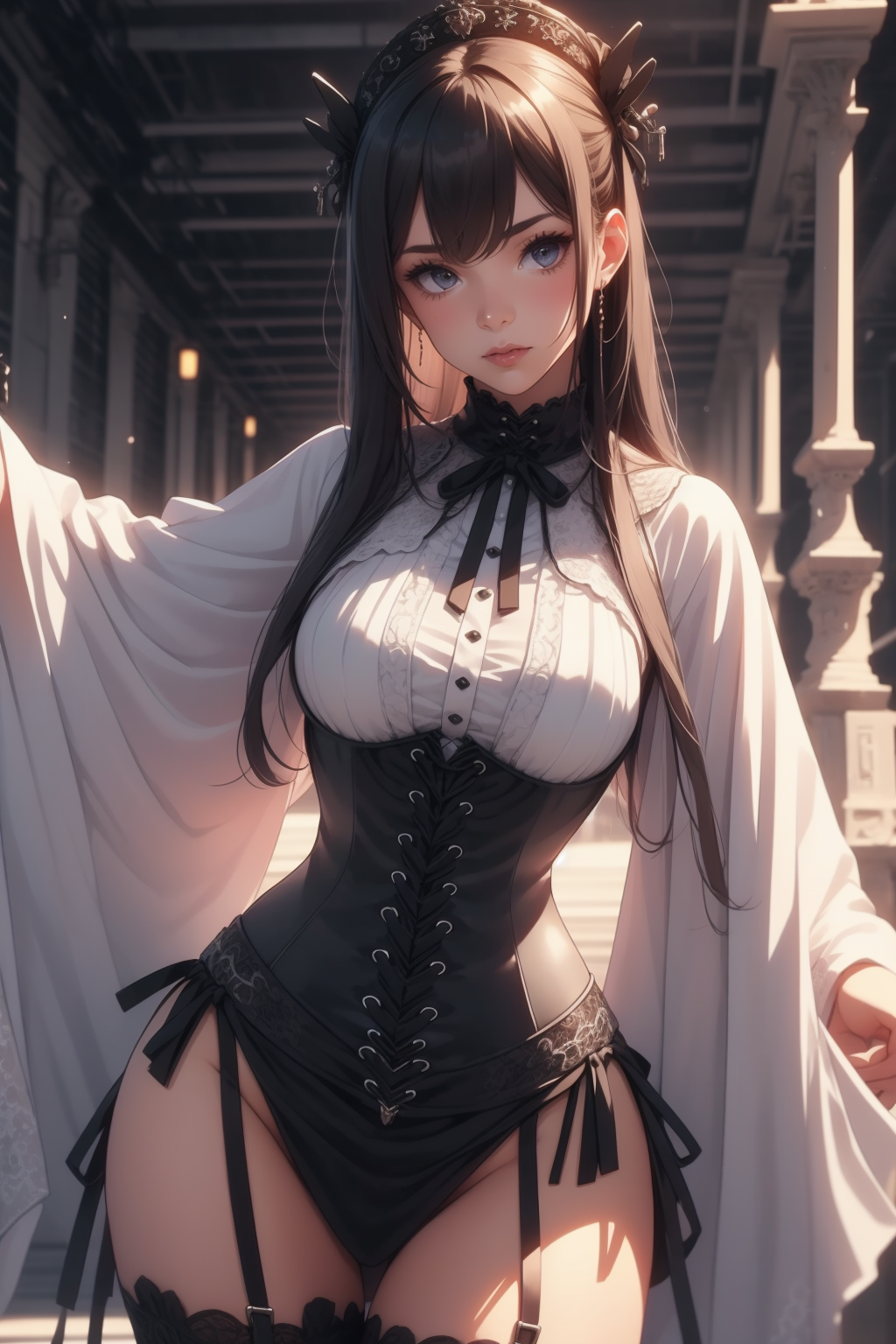 前側のラックアップ式アンダーバストコルセットを作成するように学習されました。場合によってはオーバーバストになることもあります。これはプロンプトの仕方次第です。