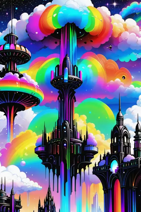 明るいレインボー色とゴシックスタイルの組み合わせ、なぜなら、なぜじゃないですか?