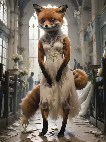 이 모델을 조금 더 호환성 있게 만들고, 어디까지 허용할 수 있는지 시험해보려고 했다. CFG 스케일을 낮추고 스텝 수를 늘렸다. 정말로 이 모델이 주제와 전혀 관련 없는 다양한 프롬프트를 사용했을 때 어떤 결과를 내는지 확인하고 싶었고, 이를 통해 모델의 가능성을 조금 더 밀어붙여보고 싶었다. 강도를 높이고 fox를 트리거로 사용하지 않으면 훨씬 더 유연해진다. 기본 자세의 표정을 더 쉽게 변경할 수 있지만, 주요 주제의 전체적인 아이디어(발바닥 아래로 내려온 발과 이상한 외모 등)는 유지된다.