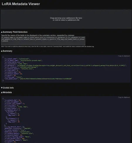 Single file pure HTML tool for viewing LoRA metadata that can be run locally on your web browser without the need of installation or internet connectivity.