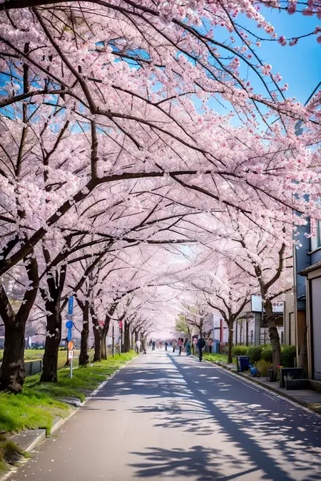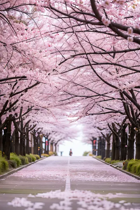 You can add prompt words, petals, petals on the ground, roads, crowds, people, and other words to enrich the picture.