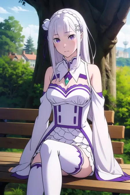 默认服装:发饰花,x 发饰,发带,白裙,分离衣领,宽袖,白色大腿袜,