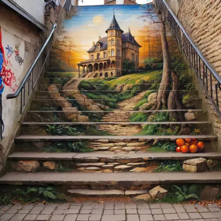 프롬프트에 계단, 계단 아트를 추가하고, 트리거 단어 stair-art를 끝에 붙여보세요.