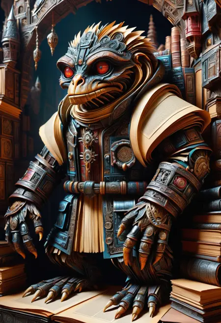 尝试加入“由书籍、皮革、纸张或书页制成”等描述,以引导风格向你想要的方向发展。