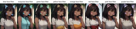 Currently supports cat ears, rabbit ears, antlers, whiskers and nose, hearts.