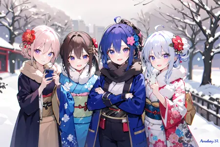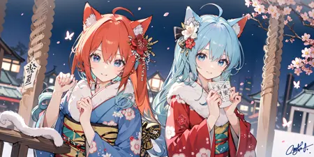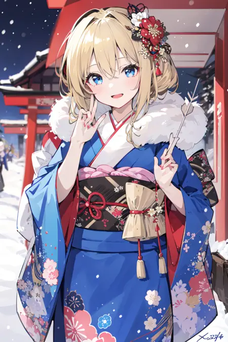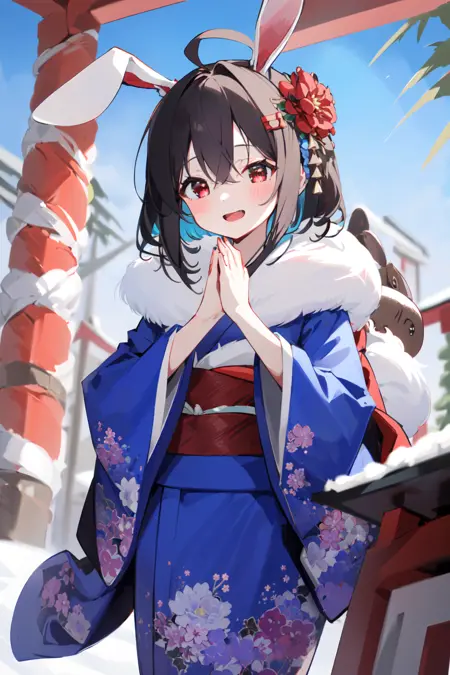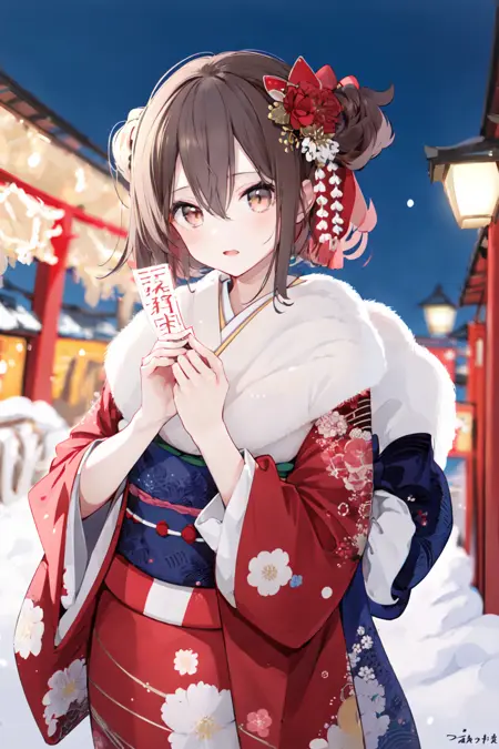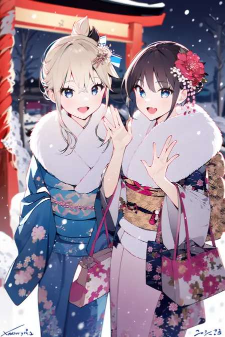 由于刚过完元旦,所以现在P站上一大堆新年贺图,所以我今天收集了一波我喜欢的,训练了这个lora。