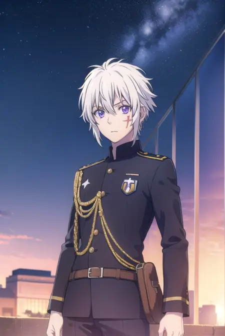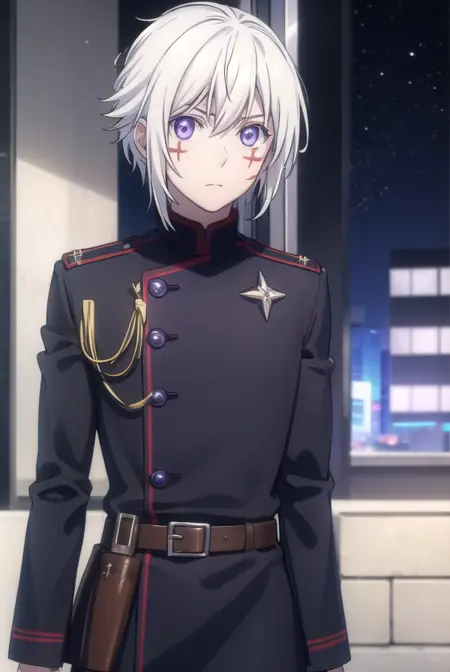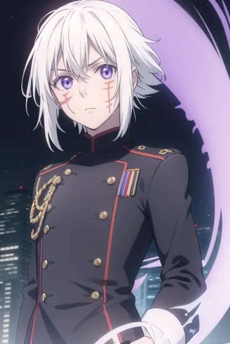 allen walker, (紫の目:1.1), 白髪, 男性焦点, 縫い目, 顔の傷跡,