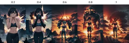 このLoRAをトリガーするためのキーワードを明示する必要はありません。モデルのスタイルを維持したい場合は、低めのウェイト(例を参照)を使用することをおすすめします。