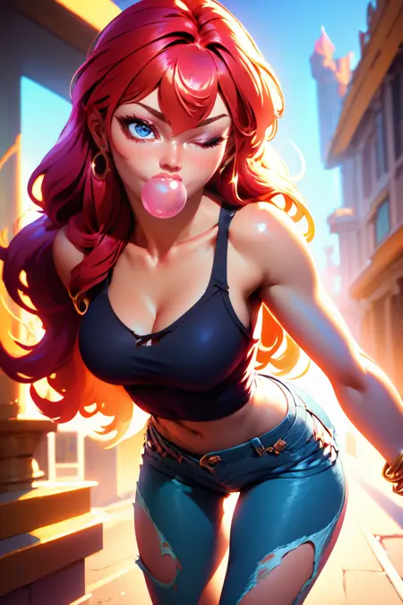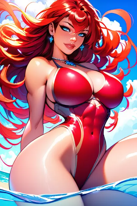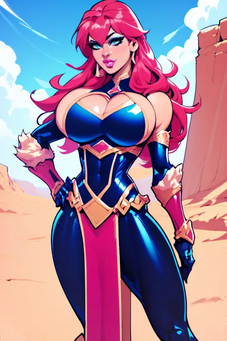 v2 Trigger : 1girl, long hair, bangs, bodysuit, clothing cutout, armguards with fur, pelvic curtain, high heel boots