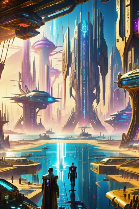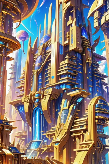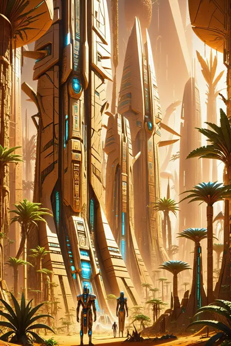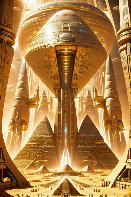 A vibrant scifi architectural style based on ancient Egypt.