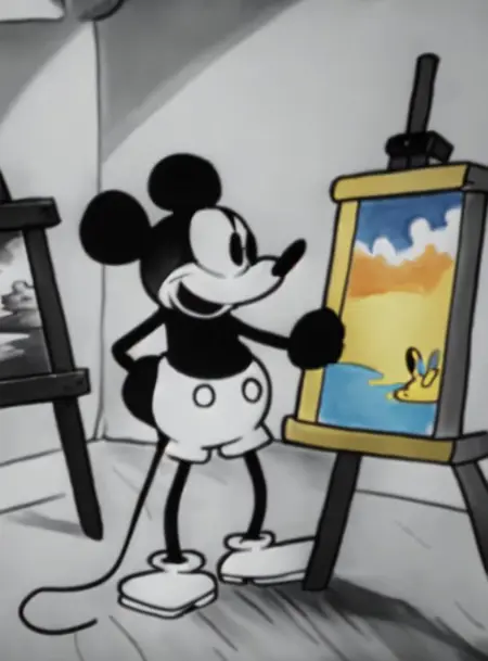 Training images were pulled from three public domain disney animations. "Steamboat Willie", "The Galloping Gauncho", and "Plane Crazy"