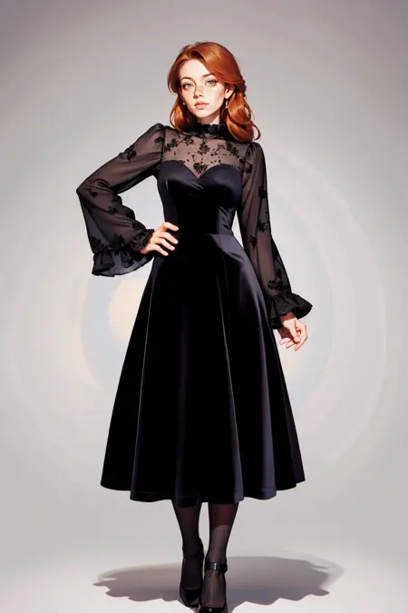 v3lv3tsh33r, long sleeves, standing, black velvet dress, see-through sleeve,