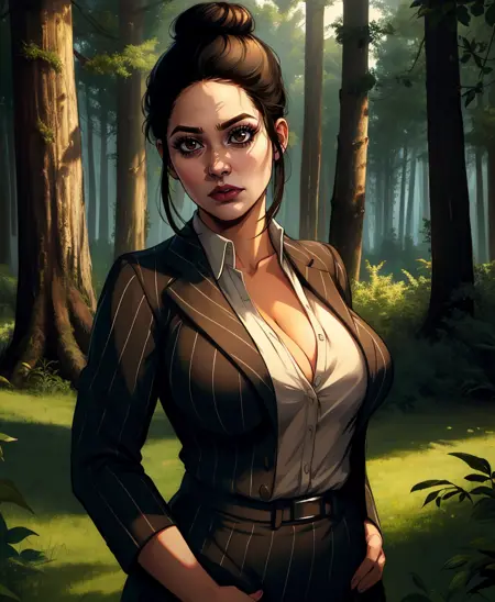 Jane、黒髪、茶色の目、髪を結んだスタイル