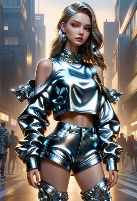 尝试使用“钢”、“钢铁制成”、“闪亮”等词,以获得更出色的效果。 :)