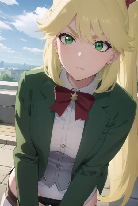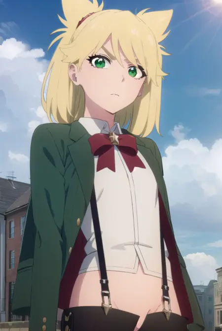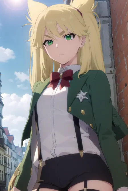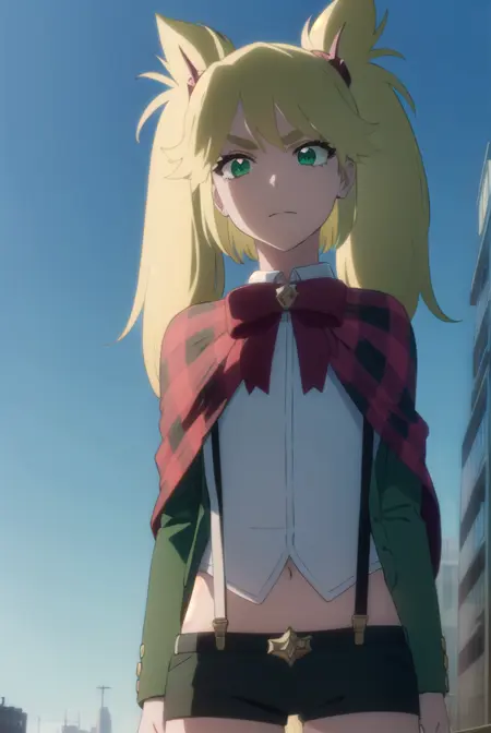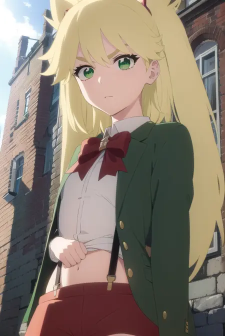 ninny spangcole, long hair, blonde hair, (green eyes:1.5), twintails, two side up,