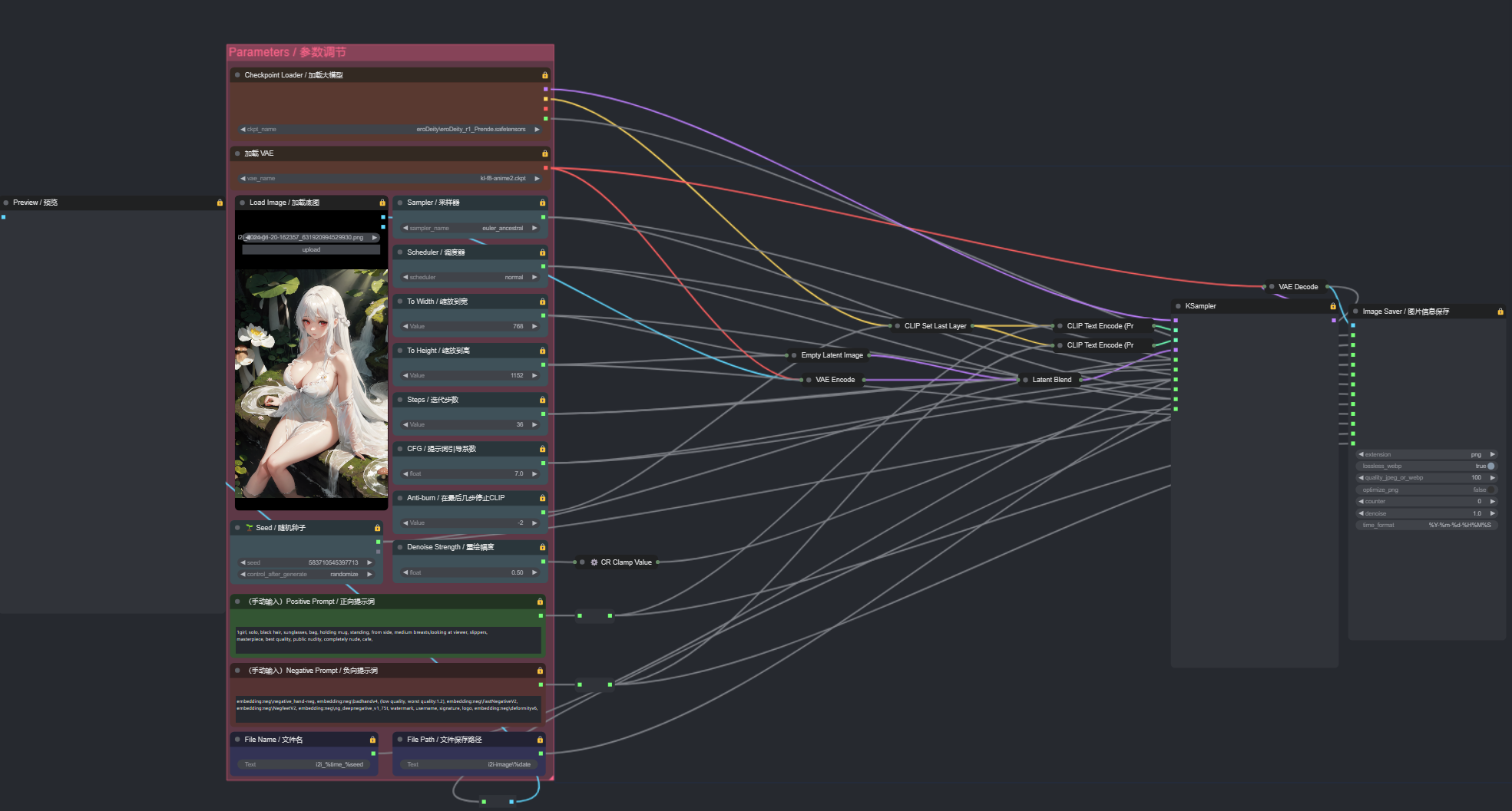 更新内容:comfyUI的文生图/图生图抽卡工作流,支持通配符。使用ComfyUI manager 来安装缺失的节点。同时,若您是初次接触ComfyUI,请使用 @秋葉aaaki 的ComfyUI整合包 。