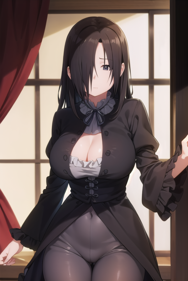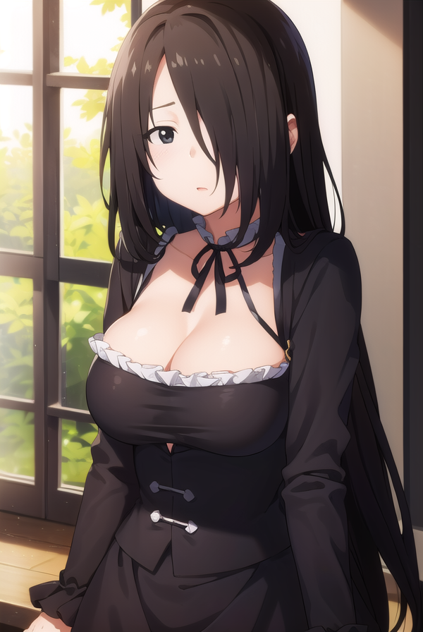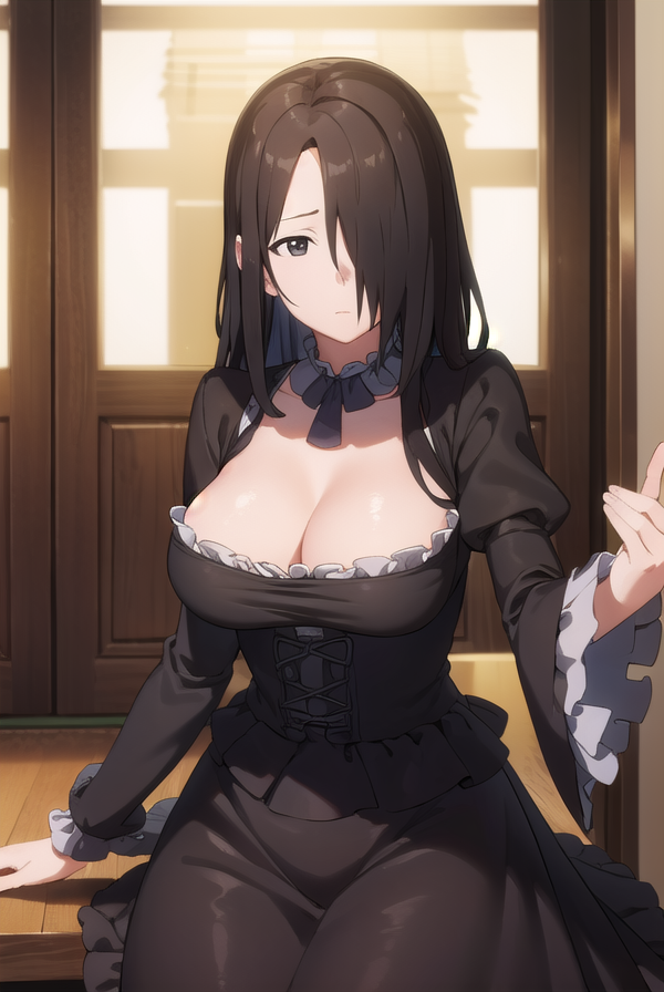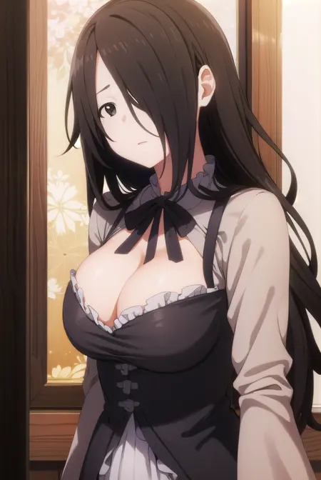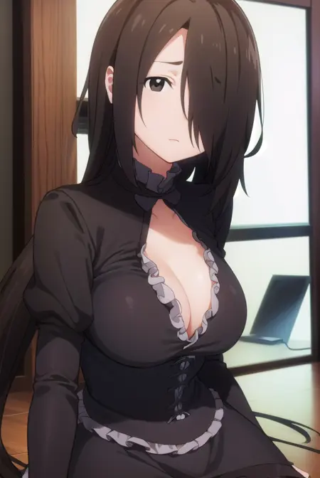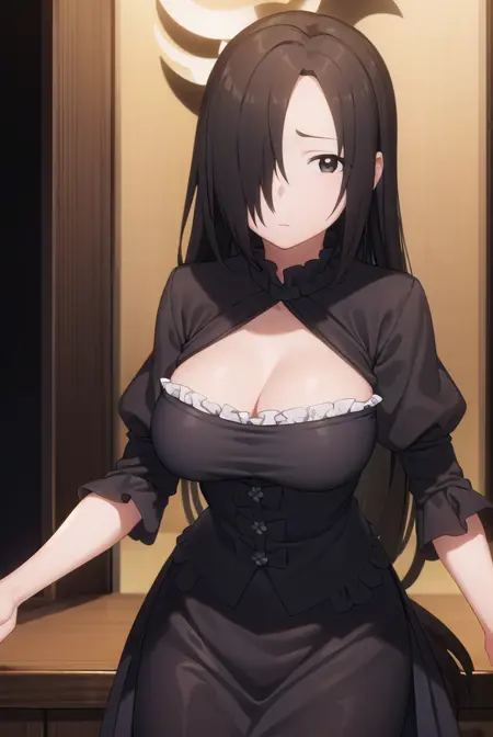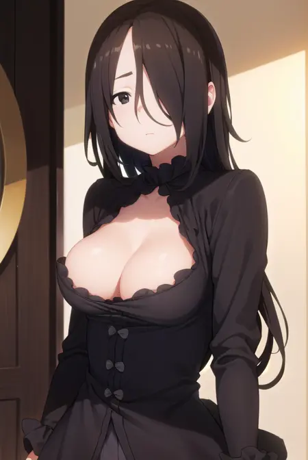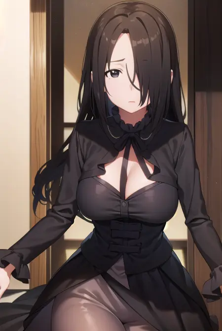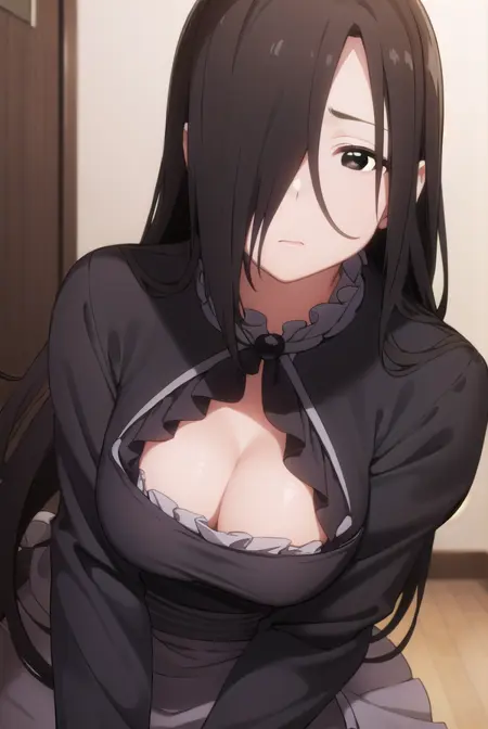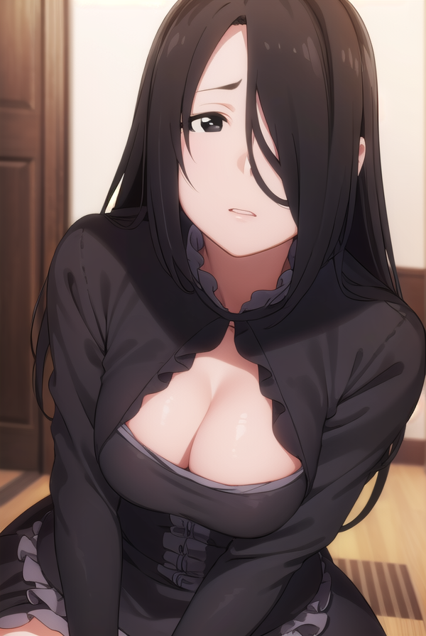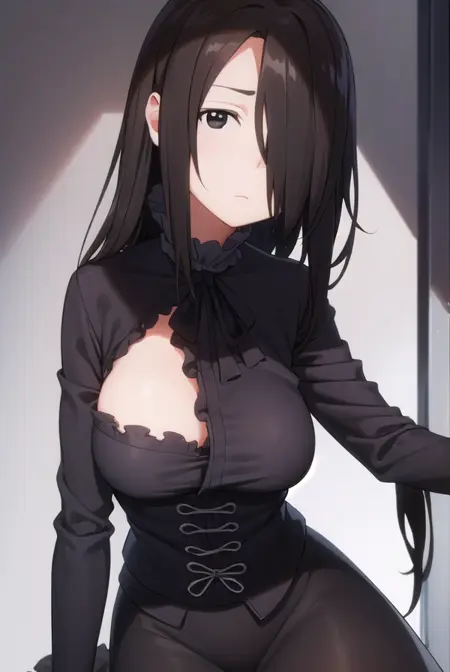 izumi takanashi, long hair, black hair, (hair over one eye:1.5), (black eyes:1.5),
