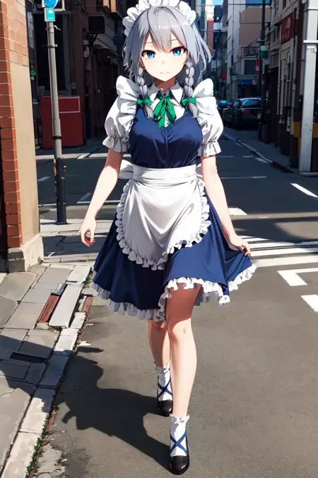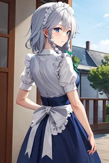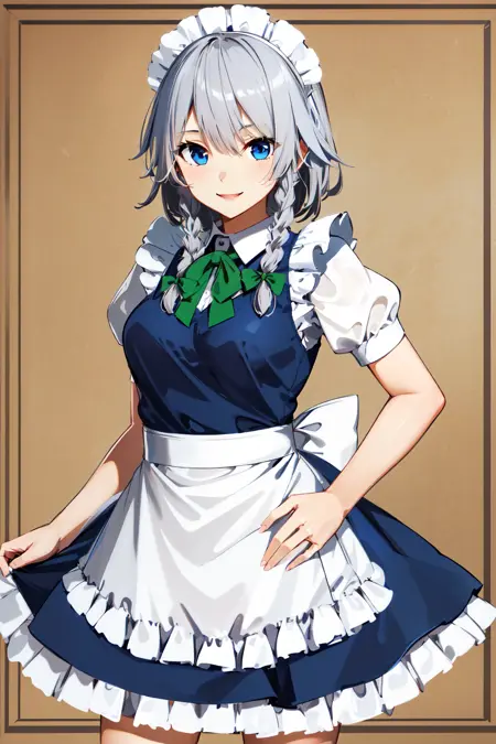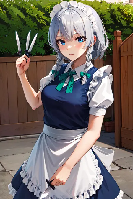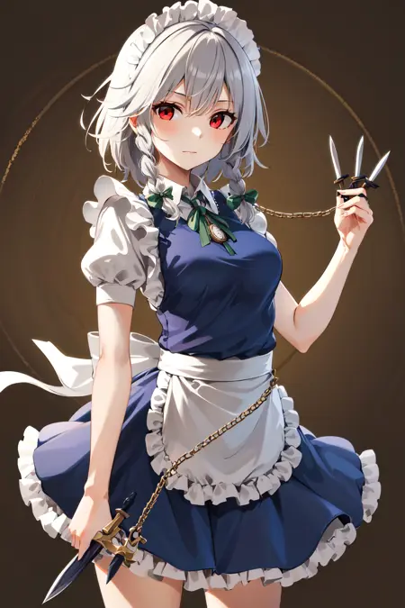 提示:1girl, solo, izayoi Sakuya, sakuya1, maid, maid headdress, maid apon, medium breasts