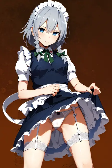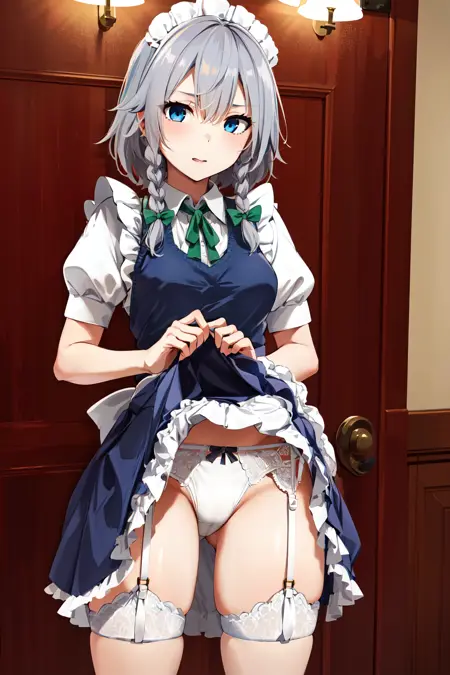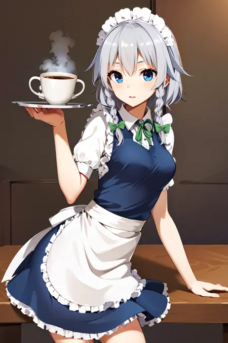 prompt : 1girl, solo, izayoi Sakuya, sakuya1, maid, maid headdress, maid apon, medium breasts