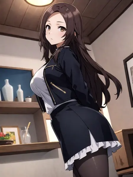 トリガー語: nu、分け目のある前髪、茶色の髪、長い髪、茶色の目