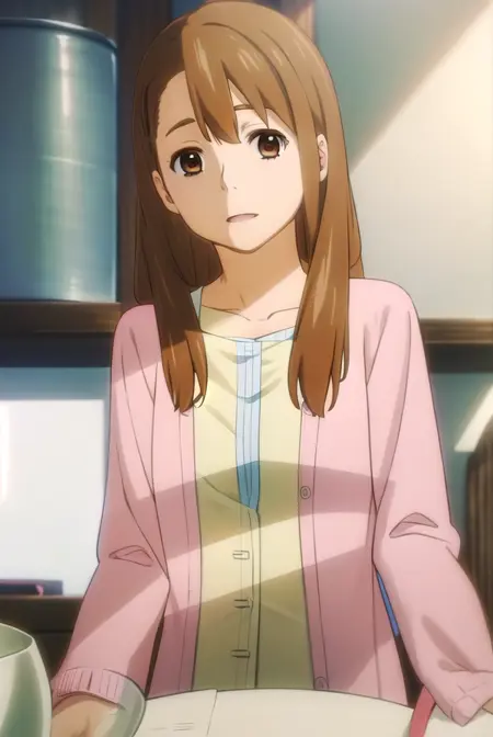 shirt, yellow shirt, collarbone, long sleeve, cardigan, (pink cardigan:1.5),