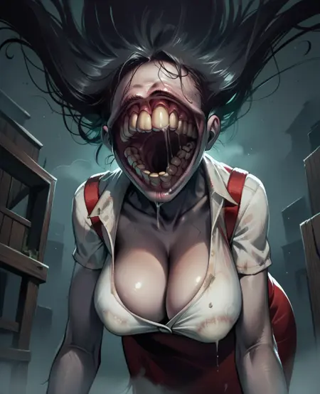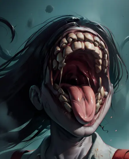 Lamentation, - big mouth, or open mouth, teeth, < - may be mandatory -