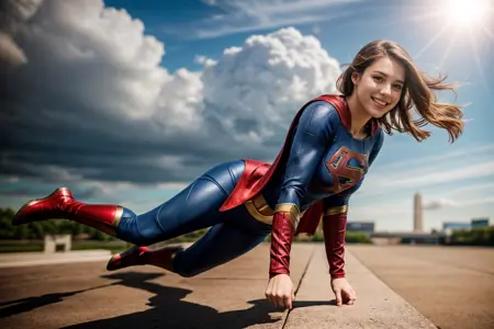 Prompt w/o controlnet: supergirl,flying in the sky