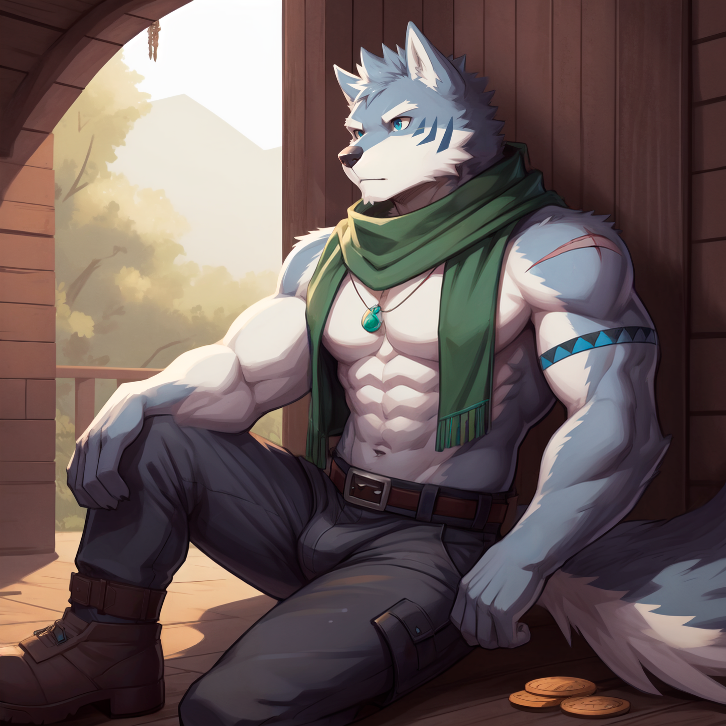Trigger Words: hakuma, wolf, facial markings, scar, scarf