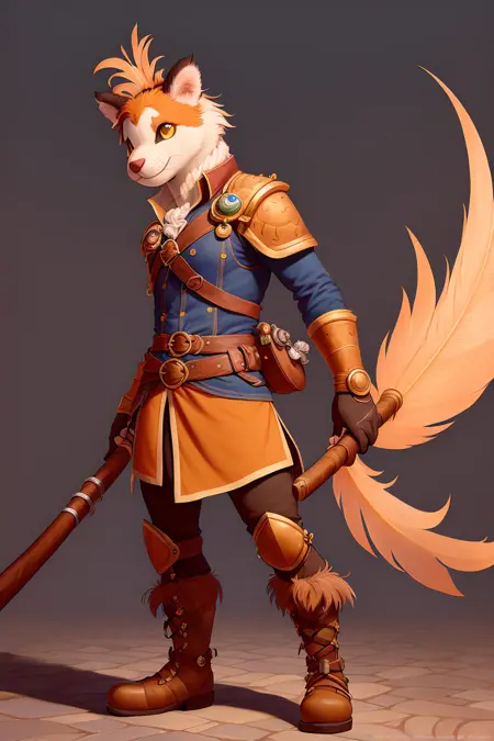 fantasycharacter, 1boy solo, standing, male focus, full body, looking at the viewer, video game concept art, heroic pose, (cat, tail, whiskers, furry, bracelet, no humans, necklace, open mouth, sharp teeth)