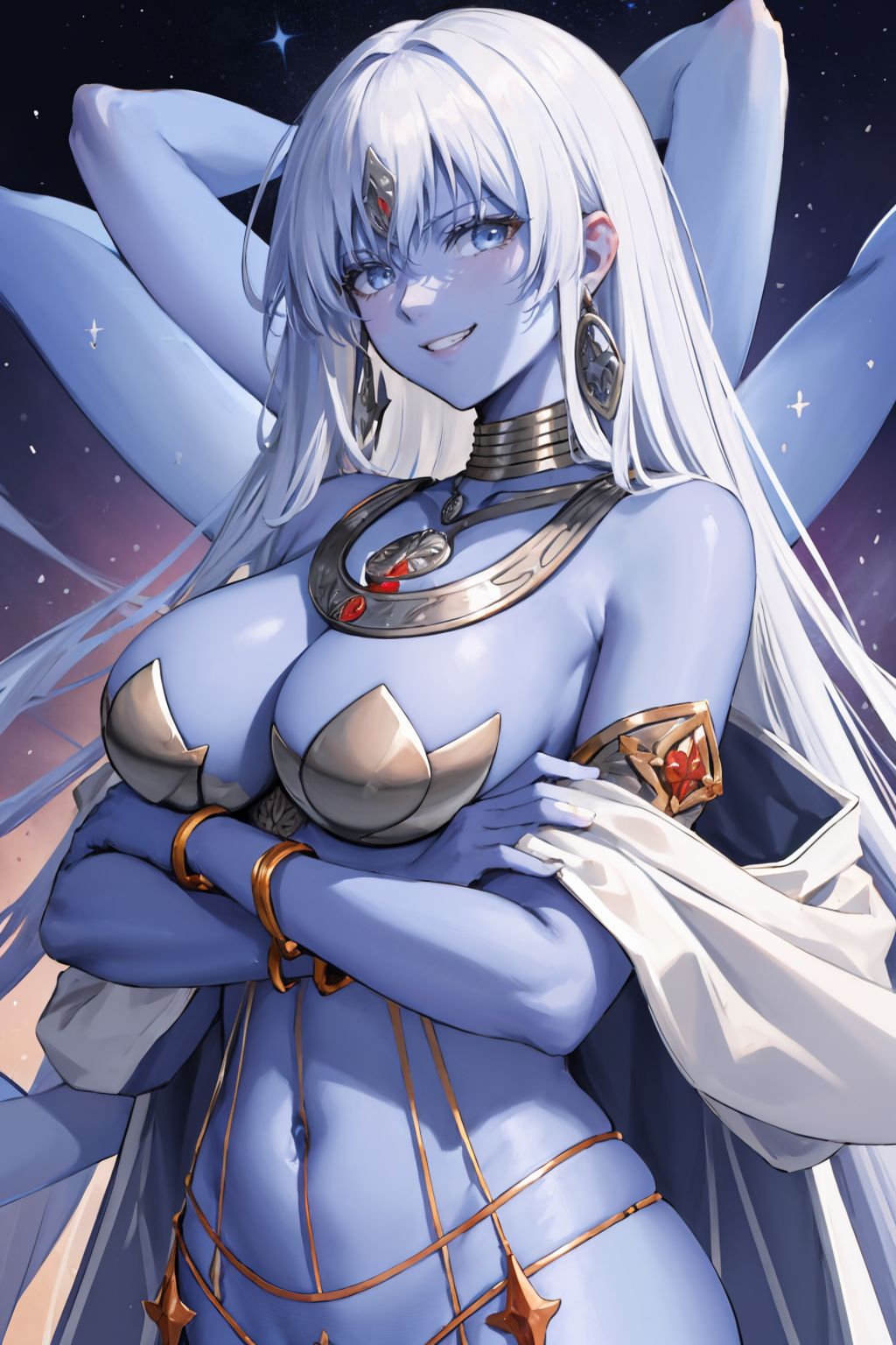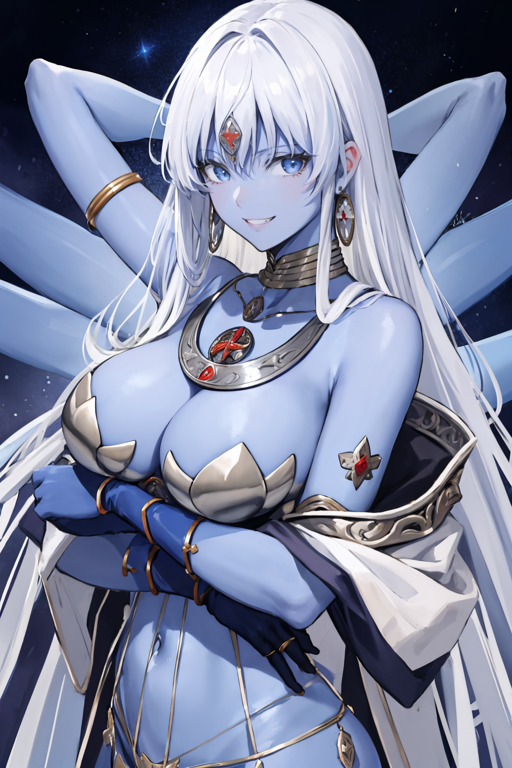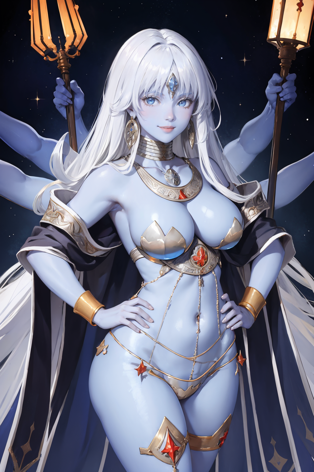"추가 팔"은 그녀의 추가 팔을 생성하지만 불안정합니다. FallenIncursio의 추가 팔 도우미 LoRA(관련 자원에도 링크됨)를 사용하는 것을 추천합니다.