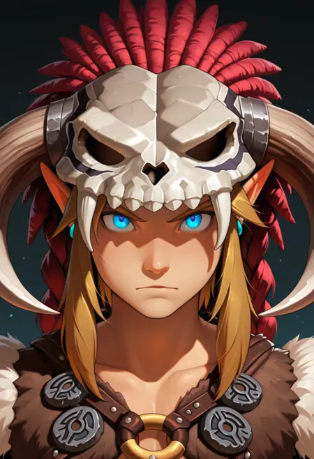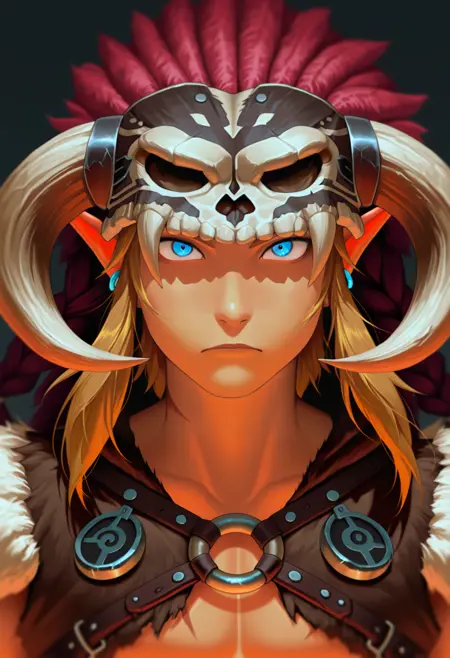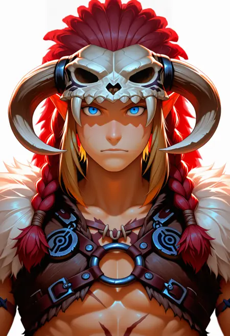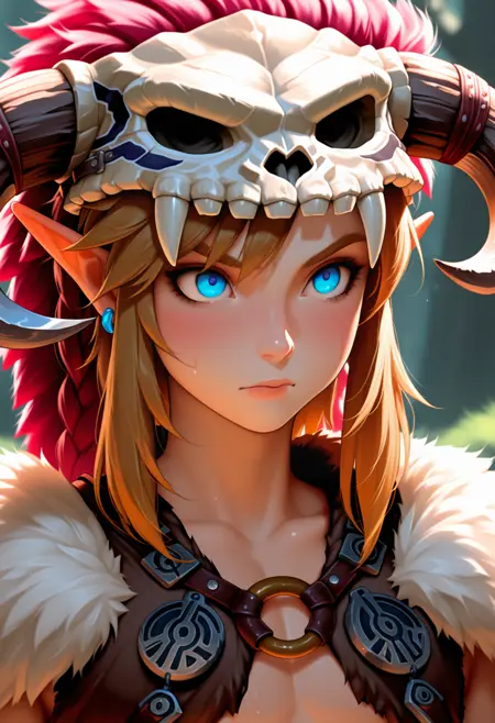 barbarian, link, fur trim, animal skull,