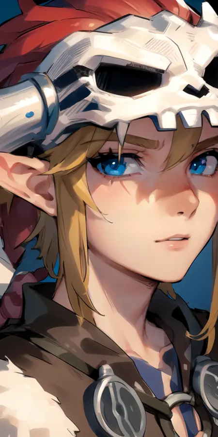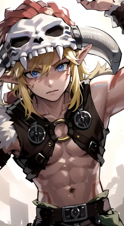 barbarianlink, mask_on_head, helmet, male_focus, looking_at_viewer