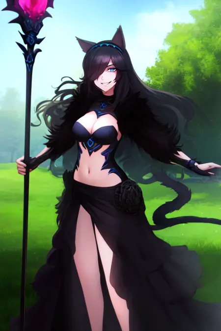 要让她的法杖看起来正确比较困难,但通过修复绘画(inpainting)应该可以实现。