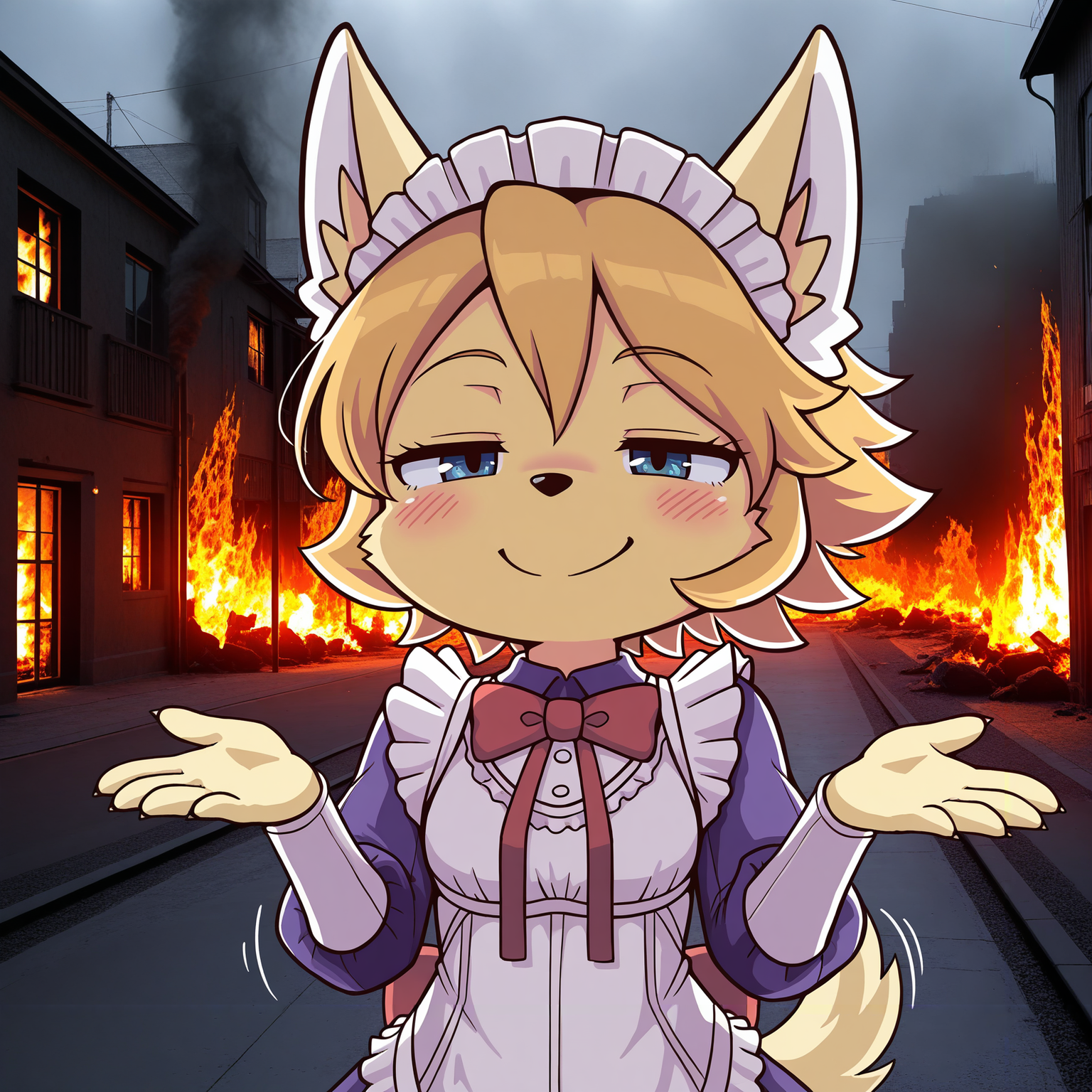 Useful tags: 1girl, dog girl, furry female, animal ears, animal nose, tail, blue eyes, blonde hair, short hair