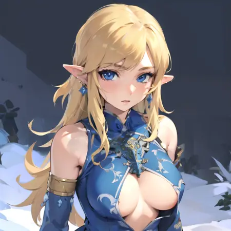 frostbite, link, 1boy, male focus, detached sleeves, dress, solo, blue eyes,