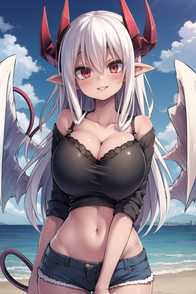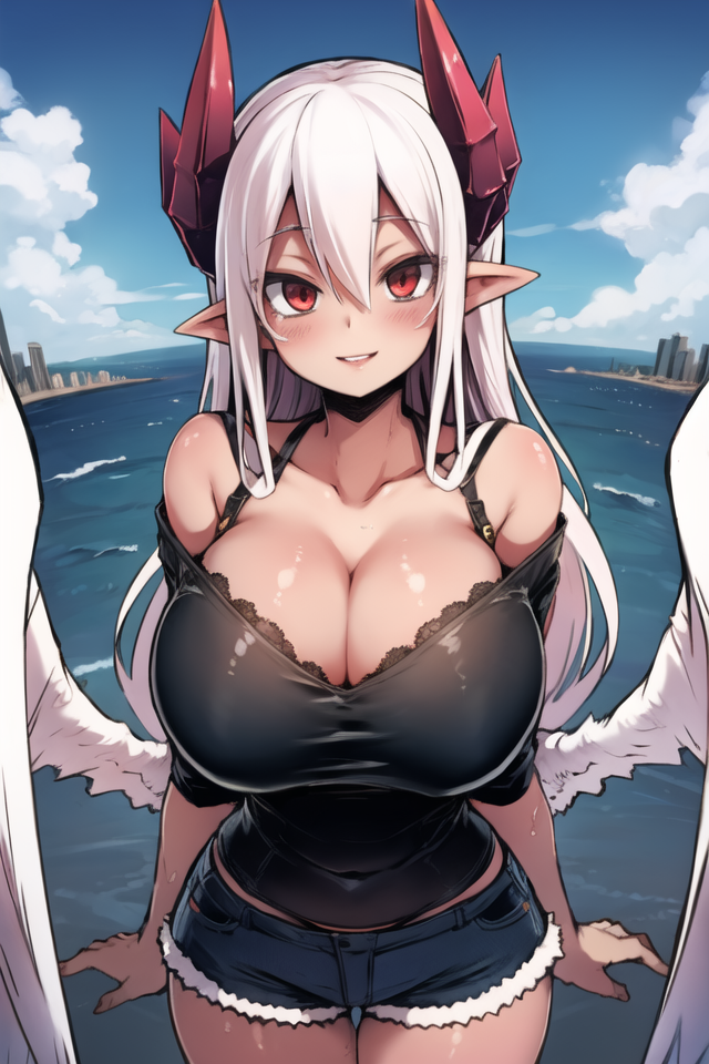 키워드: 악마, 악마 소녀, 색상이 있는 피부, 분홍색 피부:1.3,