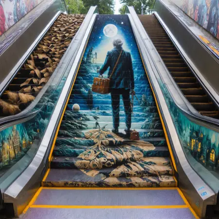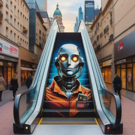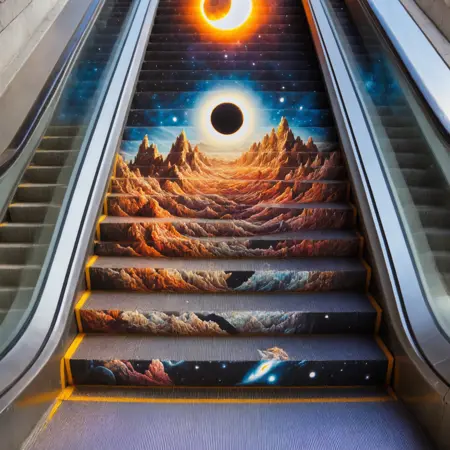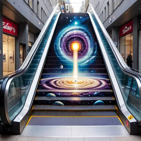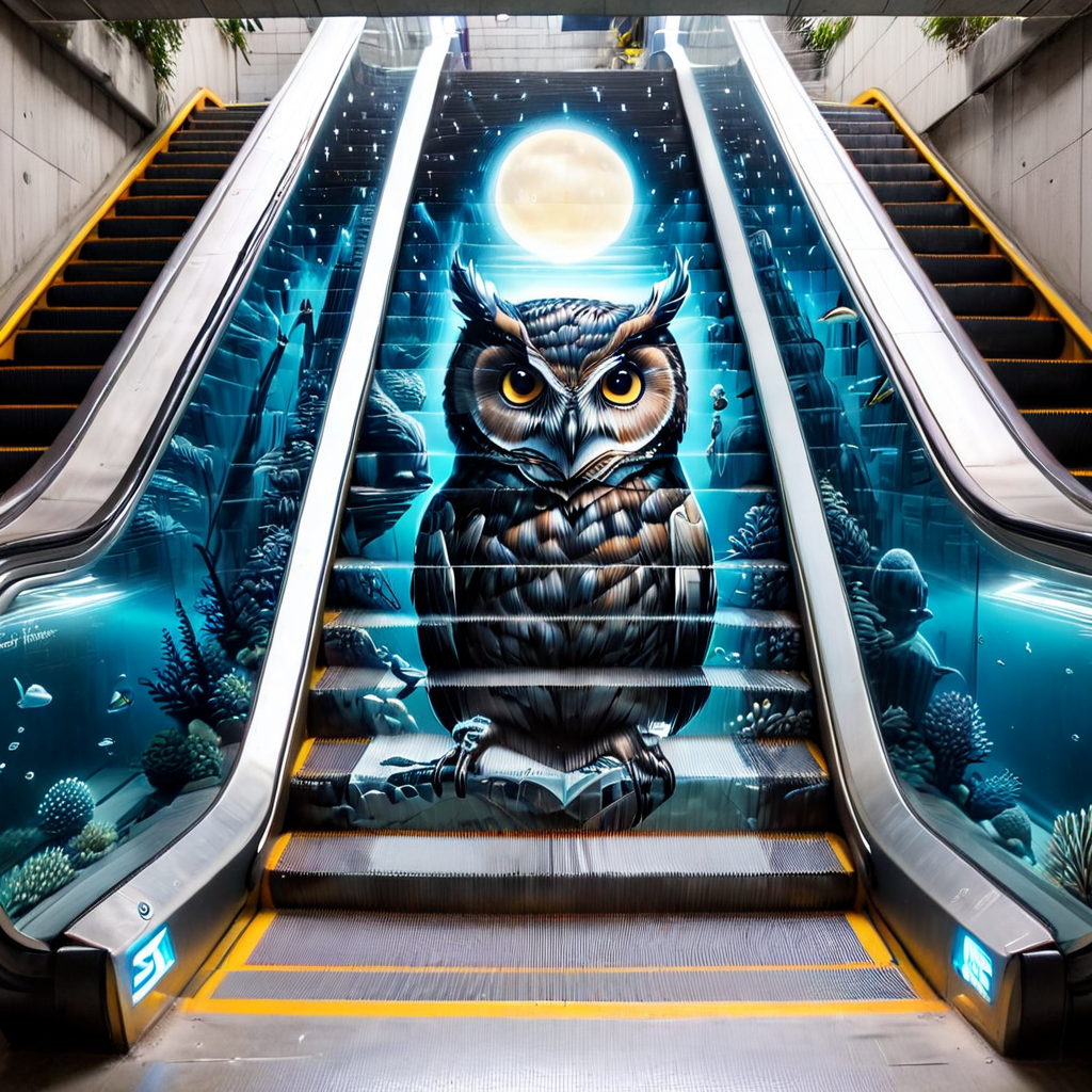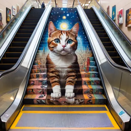 Example: masterpiece, best quality, a escalator, hamster, escalator-art lora:escalator-art:0.7