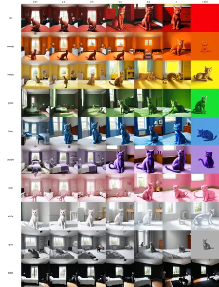 When used in the negative prompt, set to 2+ weight. This will eliminate the selected color from most of your generations.