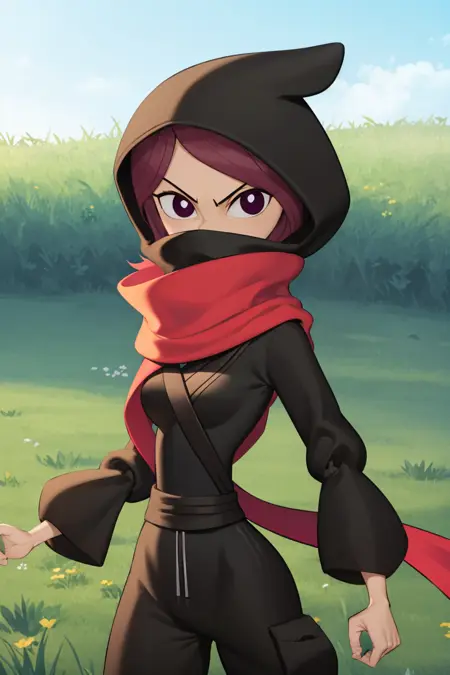 Ninja prompts : ninja, red scarf, hood, covered mouth