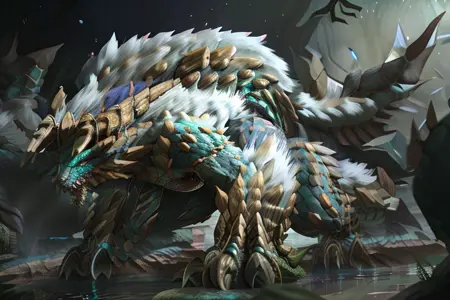 SD1.5를 기반으로 MHW와 MH:Rise의 이미지로 훈련되었습니다.
