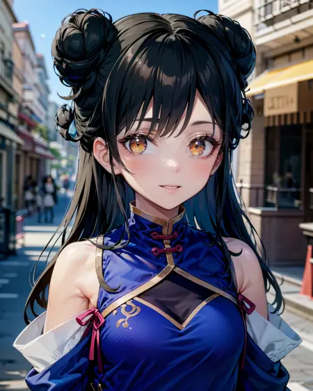 <lora:Ashen:0.9>, Ashen Lu, 橙色眼睛, 黑色头发, 长发, 编发发髻, 小胸,