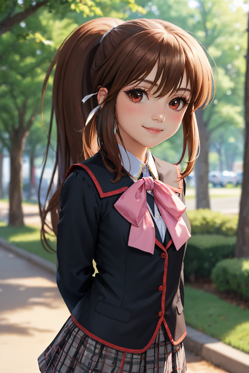默认服装: 校服,粉色蝴蝶结,格子裙