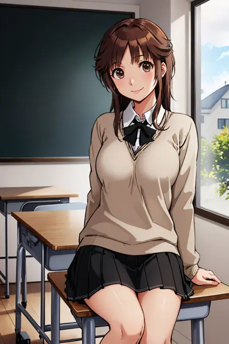 Default Outfit: school uniform, sweater, long sleeves, skirt