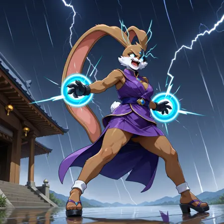 游戏《Kaze and the Wild Masks》中的反派角色(英雄角色更容易制作LORA,且拥有那种诡异的索尼克式面孔,所以我选择了最难的这个)。