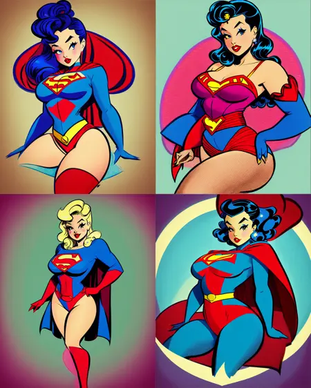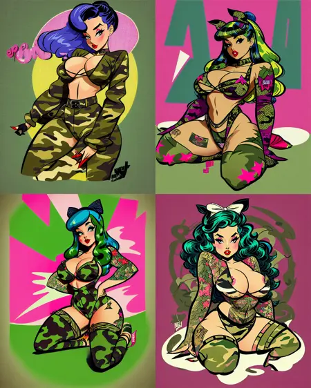 このLoRAは、キャラクターのプロンプトをピンアップガール風に引き出すものになります。モデルはより装飾的なイラストに特化して学習されているため、そのスタイルに偏りがありますが、2Dではありえない領域へと進めば非常に良い結果が得られます。