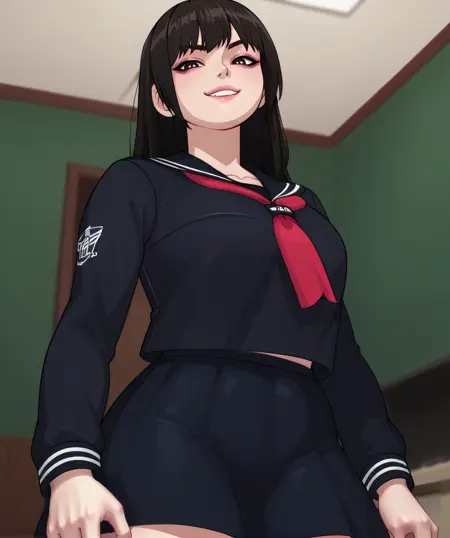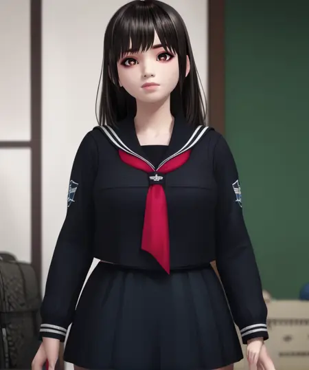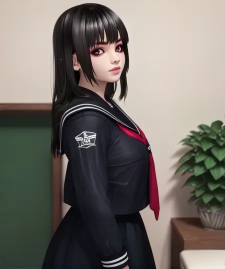 sailor collar,black skirt,black school uniform,black shirt,long sleeves,