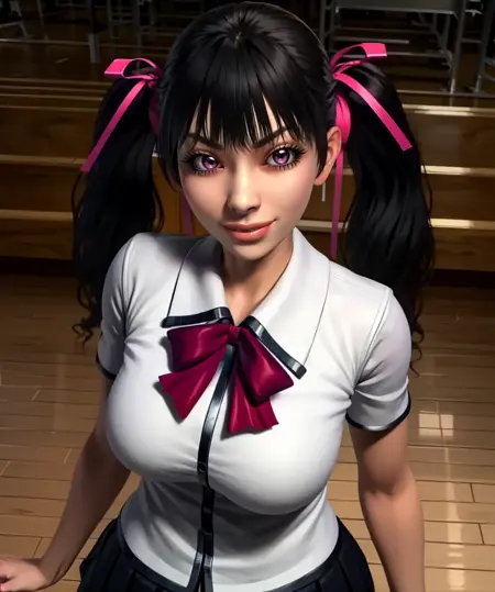 - suggest twintails, hair ribbon, in NEG if attempting hair change
