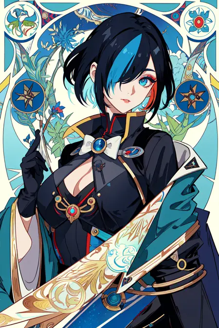 이 모델은 파스텔 스타일 모델(Aneime, 만화 등)과 함께 사용할 때 가장 효과적입니다. 이는 아르 누보의 원조 개념 때문이며, 알폰스 미우카에 의해 인기 있게 퍼졌습니다.